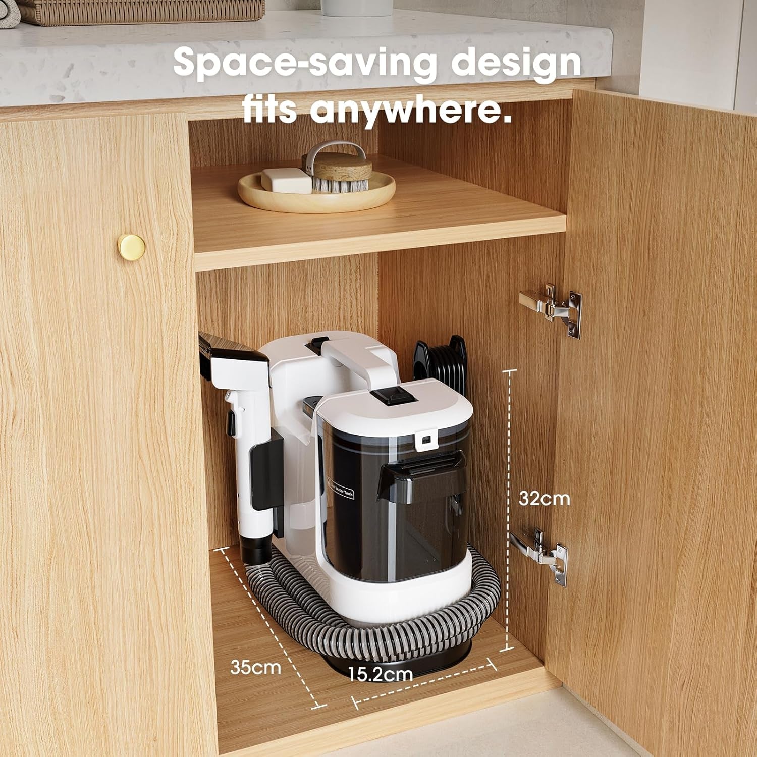 - Ultra Long Power Cord & Hose: The 5-meter power cord and 1.7-meter hose provide an extensive operating radius, granting this portable carpet cleaner greater freedom of movement. You can effortlessly clean larger areas without frequently relocating the power outlet. Cleaning sofas, deep-seated chairs, or room corners becomes more convenient and labor-saving.